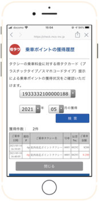 ご乗車により取得した得タクポイントはアプリを使用してご利用履歴をいつでもご確認をいただけます。