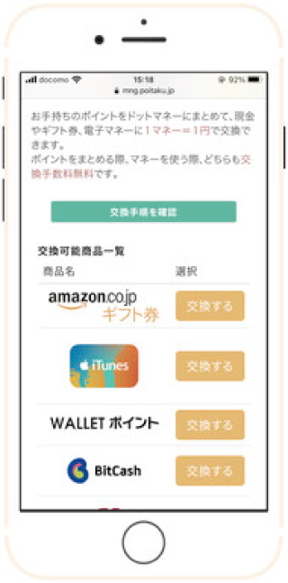また、貯めたポイントを様々な別のポイントやマイル、現金などに交換することができます。